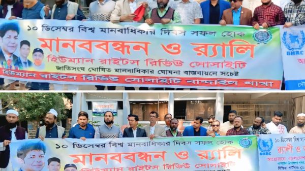 হুমায়ুন কবির। নান্দাইল (ময়মনসিংহ) প্রতিনিধি। জাতিসংঘ ঘোষিত (১০ ডিসেম্বর) বুধবার ময়মনসিংহের নান্দাইলে বিশ্ব মানবাধিকার দিবস উপলক্ষে মানববন্ধন ও র্যালি অনুষ্ঠিত হয়েছে। হিউম্যান রাইটস রিভিউ সোসাইটির আয়োজনে ও বাংলাদেশ মানবাধিকার কমিশন