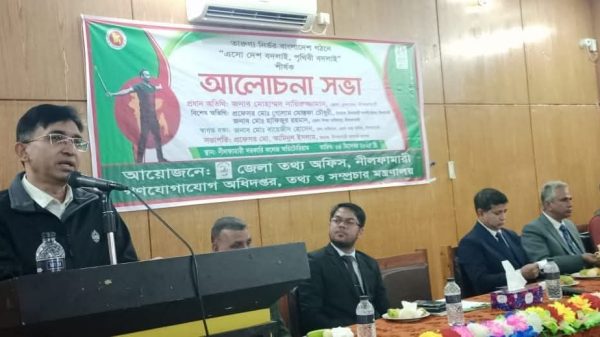 আব্দুস সালাম,নীলফামারীঃ নীলফামারী জেলা তথ্য অফিসের উদ্যোগে তারুণ্য নির্ভর বাংলাদেশ গঠনে ‘এসো দেশ বদলাই, পৃথিবী বদলাই’ শীর্ষক আলোচনা সভা অনুষ্ঠিত হয়েছে। বৃহস্পতিবার দুপুরে (০৪ডিসেম্বর) নীলফামারী সরকারী কলেজ অডিটোরিয়ামে এই সভা