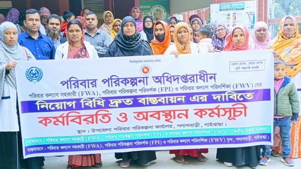 সাকিব হোসেন পটুয়াখালী জেলা প্রতিনিধিঃ- পরিবার পরিকল্পনা অধিদপ্তরের অধীন, পরিবার পরিকল্পনা পরিদর্শক (FPI) পরিবার কল্যাণ পরিদর্শিকা (FWV) ও পরিবার কল্যাণ সহকারী (FWA) দের নিয়োগবিধি দ্রুত বাস্তবায়নের দাবিতে পটুয়াখালীর দুমকি উপজেলায়