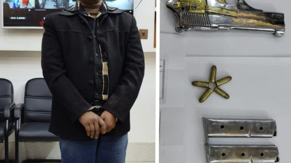 যশোর জেলা প্রতিনিধিঃ মোঃ মানিক হোসেন যশোরে পাঁচটি বিদেশি পিস্তল, দশটি ম্যাগজিন, ৫০ রাউন্ড গুলি এবং সাড়ে চার কেজি গাঁজাসহ লিটন গাজী (৪০) নামে এক যুবককে আটক করেছে জেলা ডিবি
