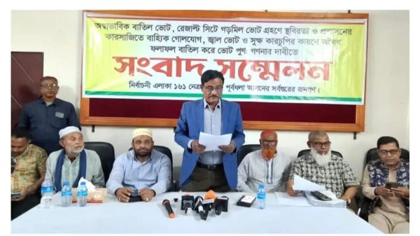 মোঃ সাখাওয়াত হোসেন পূ্র্বধলা নেত্রকোনা প্রতিনিধিঃ ত্রয়োদশ জাতীয় সংসদ নির্বাচনে ১৬১, নেত্রকোণা-৫ (পূর্বধলা) আসনে ব্যাপক অনিয়ম, কারচুপি ও প্রশাসনিক হস্তক্ষেপের অভিযোগ তুলে ফলাফল বাতিল ও সব কেন্দ্রের ভোট পুর্ণ গণনার