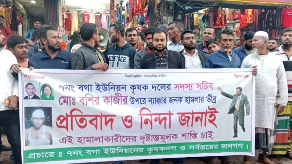 সাকিব হোসেন পটুয়াখালী জেলা প্রতিনিধি: পটুয়াখালীর বাউফলে বগা ইউনিয়ন কৃষক দলের সদস্য সচিব বশির কাজির ওপর হামলা ও মারধরের প্রতিবাদে বিচার চেয়ে, বিক্ষোভ মিছিল করেছেন কৃষক দলের নেতাকর্মীরা। হামলার ঘটনায়