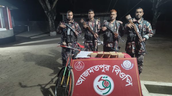 মাহিদুল ইসলাম ফরহাদ চাঁপাইনবাবগঞ্জ জেলা প্রতিনিধি চাঁপাইনবাবগঞ্জ মহানন্দা ব্যাটালিয়ান (৫৯ বিজিবি) তরুন প্রজন্ম এবং যুবসমাজকে মাদকের ভয়াবহতা ও করাল গ্রাস হতে রক্ষায় বিজিবি সদস্যরা সীমান্তে সর্বদা সচেষ্ট অবস্থায় দায়িত্ব পালন