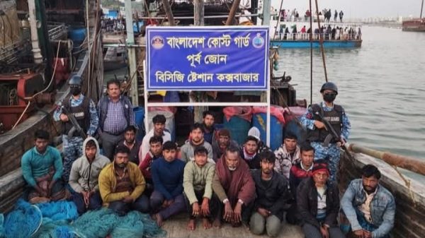 কক্সবাজার প্রতিনিধি: কামরুল ইসলাম কক্সবাজার সংলগ্ন গভীর সমুদ্র এলাকায় বাংলাদেশ কোস্ট গার্ডের বিশেষ অভিযানে দুটি অবৈধ আর্টিসানাল ট্রলিং বোট, বিপুল পরিমাণ ট্রলিং জাল ও সামুদ্রিক মাছসহ ৩৪ জন জেলেকে আটক