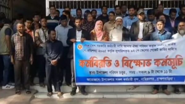খ,ম,জায়েদ হোসেন,নাসিরনগর (ব্রাহ্মণবাড়ীয়া) প্রতিনিধিঃ বৈষম্যহীন ৯ম পে স্কেল বাস্তবায়নসহ বিভিন্ন দাবিতে ব্রাহ্মণবাড়িয়া জেলার নাসিরনগর উপজেলায় কর্মবিরতি ও বিক্ষোভ কর্মসূচি পালন করেছেন সরকারি কর্মচারীরা। মঙ্গলবার ৩ ফেব্রুয়ারি সকালে নাসিরনগর উপজেলা কল্যাণ ফেডারেশন শাখার