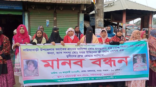 মাসুদ রানা জামালপুর প্রতিনিধি : জামালপুরের সরিষাবাড়ীতে র্যাব সদস্যের স্ত্রী লিপি আক্তার হত্যাকাণ্ডের খুনিদের দ্রুত গ্রেপ্তার ও ফাঁসির দাবিতে উত্তাল হয়ে উঠেছে জনপদ। আজ মঙ্গলবার (৬ জানুয়ারি) সকালে সরিষাবাড়ী গণময়দান