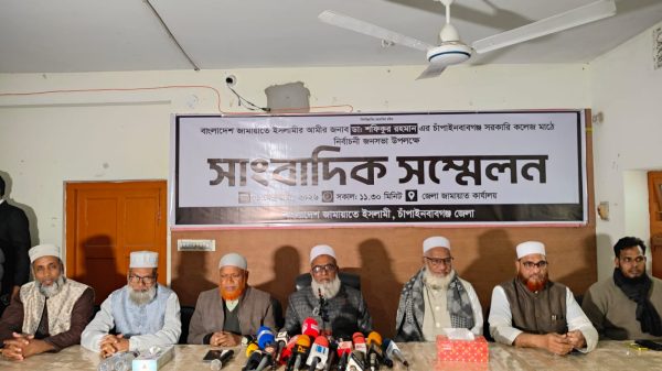 মাহিদুল ইসলাম ফরহাদ , চাঁপাইনবাবগঞ্জ জেলা প্রতিনিধি বাংলাদেশ জামায়াতে ইসলামীর আমীর জনাব ডা. শফিকুল রহমানের চাঁপাইনবাবগঞ্জ সরকারি কলেজ মাঠে অনুষ্ঠিতব্য নির্বাচনী জনসভা উপলক্ষে সাংবাদিক সম্মেলন অনুষ্ঠিত হয়েছে। রবিবার (১ ফেব্রুয়ারি)