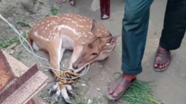 মোংলার লোকালয় থেকে আবারো জীবিত হরিণ উদ্ধার ম.ম.রবি ডাকুয়া,বাগেরহাট প্রতিনিধিঃ মোংলার লোকালয় থেকে আরারো জীবিত হরিণ উদ্ধারের ঘটনা ঘটেছে।উদ্ধার হওয়া একটি মায়াবী হরিণ ফের বনে ফেরত পাঠানো হয়েছে। মোংলার