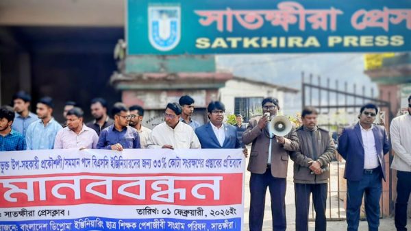 ওমর ফারুক বিপ্লব সাতক্ষীরা প্রতিনিধি: ১০ম গ্রেডভুক্ত উপ-সহকারী প্রকৌশলী/সমমানের পদে প্রকৌশলে উচ্চতর ডিগ্রিধারীদের প্রবেশের সুযোগ কিংবা কোটা সংরক্ষণের কোন অপকৌশল মেনে নেয়া হবে না বলে হুঁশিয়ারি দিয়েছে ডিপ্লোমা ইঞ্জিনিয়ারিং ছাত্র