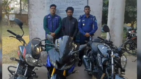 খ,ম,জায়েদ হোসেন,নাসিরনগর (ব্রাহ্মণবাড়ীয়া) প্রতিনিধিঃ ব্রাহ্মণবাড়িয়া জেলার নাসিরনগর উপজেলায় অভিযান চালিয়ে নাসিরনগর থানা পুলিশ ৩টি চোরাই মোটরসাইকেল উদ্ধার করেছে। এ ঘটনায় চোর চক্রের এক সদস্যকে গ্রেফতার করা হয়েছে। শুক্রবার ৩০ জানুয়ারি