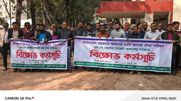 সোহেল খান দূর্জয় নেত্রকোনা : নেত্রকোনায় ৯ম পে স্কেলের গেজেট দ্রুত প্রকাশের দাবিতে বিক্ষোভ কর্মসূচি পালন করেছেন বাংলাদেশ সরকারি কর্মচারী দাবি আদায় ঐক্য পরিষদ ও বাংলাদেশ বিচার বিভাগীয় কর্মচারী এসোসিয়েশন।জানা