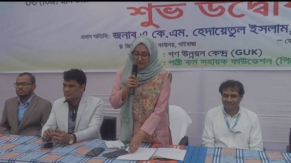 গাইবান্ধা উপজেলা প্রতিনিধি মোঃ আশরাফুল ইসলাম গাইবান্ধায় ৩ মাস মেয়াদি ফ্যাশন গার্মেন্টস, মোবাইল ফোন সার্ভিসিং, বেকারি এন্ড পেস্ট্রি প্রোডাকশন কোর্সের উদ্বোধন করা হয়েছে। আজ রোববার দুপুরে পল্লী কর্ম ফাউন্ডেশনের সহযোগিতায়