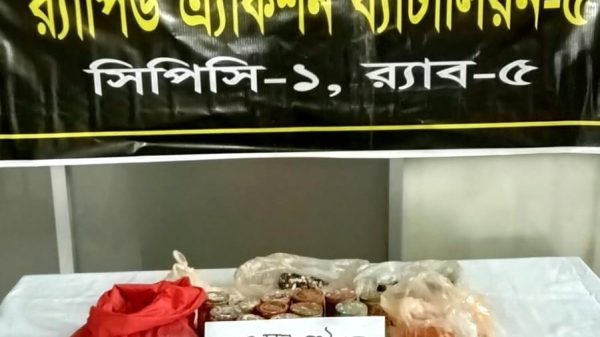 মাহিদুল ইসলাম ফরহাদ , চাঁপাইনবাবগঞ্জ জেলা প্রতিনিধি চাঁপাইনবাবগঞ্জের শিবগঞ্জে ৩ কেজি ৩০৬ গ্রাম গান পাউডার ও ককটেল তৈরীর সরঞ্জাম উদ্ধার করেছে র্যাব। গত শুক্রবার রাতে চাঁপাইনবাবগঞ্জ জেলার শিবগঞ্জ উপজেলার ঘোড়াপাখিয়া