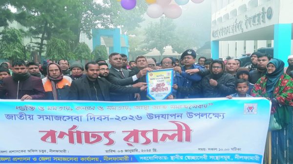 আব্দুস সালাম,নীলফামারী প্রতিনিধিঃ ‘প্রযুক্তি ও মমতায়, কল্যাণ ও সমতায়, আস্থা আজ সমাজসেবায়’ এই প্রতিপাদ্য বিষয়কে নিয়ে নীলফামারীতে জাতীয় সমাজসেবা দিবস উদযাপন উপলক্ষ্যে বর্ণাঢ্য র্যালী ও আলোচনা সভা অনুষ্ঠিত হয়েছে। শনিবার(৩