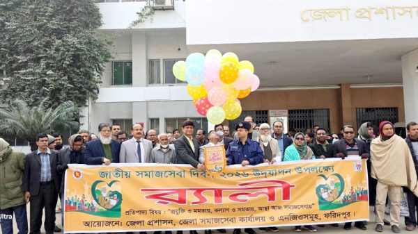 নিরঞ্জন মিত্র (নিরু) (ফরিদপুর জেলা প্রতিনিধিঃ ”প্রযুক্তি ও মমতায়, কল্যাণ ও সমতায়, আস্থা আজ সমাজসেবায়” এই প্রতিপাদ্যকে সামনে রেখে ফরিদপুরে নানা কর্মসূচির মধ্যে দিয়ে জাতীয় সমাজসেবা দিবস- ২০২৬ পালিত হয়েছে।