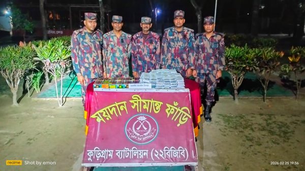 কুড়িগ্রাম জেলা প্রতিনিধি ঃ মোঃ জাকারিয়া হোসেন কুড়িগ্রামের বিভিন্ন সীমান্তে বিজিবির বিশেষ অভিযানে চলতি ২৪ ঘন্টায় মোবাইল ফোন, গরু, এবং ভারতীয় মদ জব্দ করেছে কুড়িগ্রাম (২২ বিজিবি)। জব্দকৃত পণ্যের মুল্য