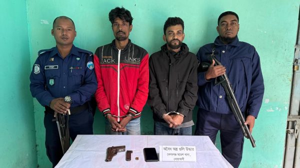 সাইফুল ইসলাম নোয়াখালী প্রতিনিধি নোয়াখালীর বেগমগঞ্জ মডেল থানা পুলিশের অভিযানে ১টি বিদেশী পিস্তল ও ০২ রাউন্ড তাজা গুলিসহ ২জন গ্রেফতার হয়েছে। আজ সকালে বেগমগঞ্জ মডেল থানার ওসি মোঃ আবদুল বারী